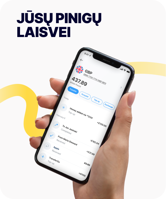 Siųskite ir gaukite pinigus, valdykite bei keiskite valiutas – viskas vienoje programėlėje.