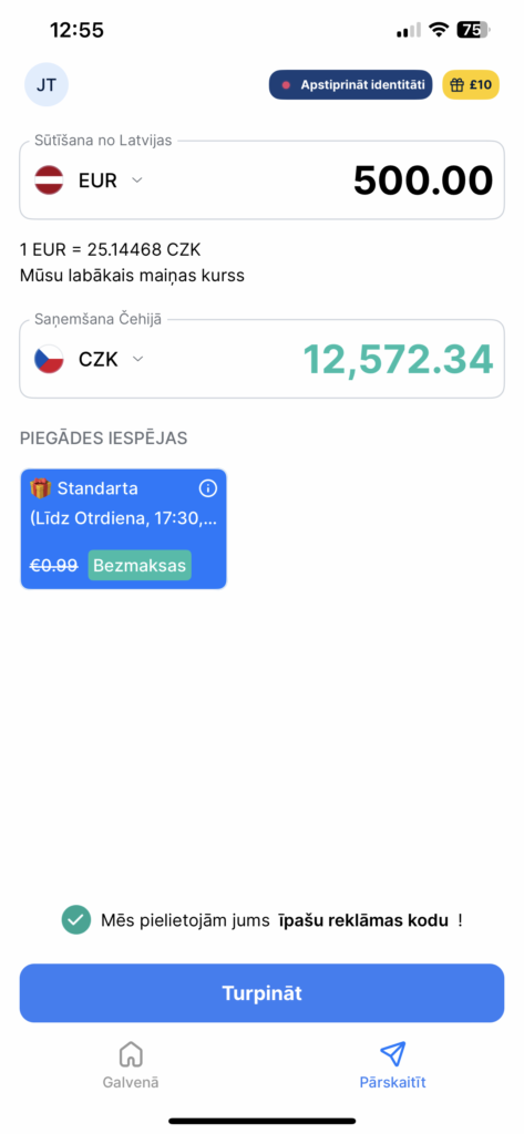 Naudas nosūtīšana par labu kursu nozīmē, ka jūs saņemat iespējami labāko valūtas kursu. Kad pamanāt izdevīgu tirgus valūtas kursu, izmantojot TransferGo valūtas konvertēšanas rīku, vienkārši piesakieties savā kontā, un jūs varat veikt pārskaitījumu par to pašu kursu.