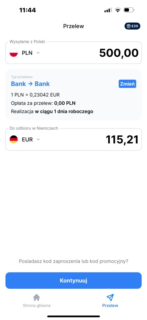 Przelewy ze standardową opcją dostawy z Polski do Niemiec są bezpłatne. Odbiorca otrzymuje dokładnie taką kwotę, jaka jest podana w aplikacji. Żadnych ukrytych opłat lub przykrych niespodzianek.