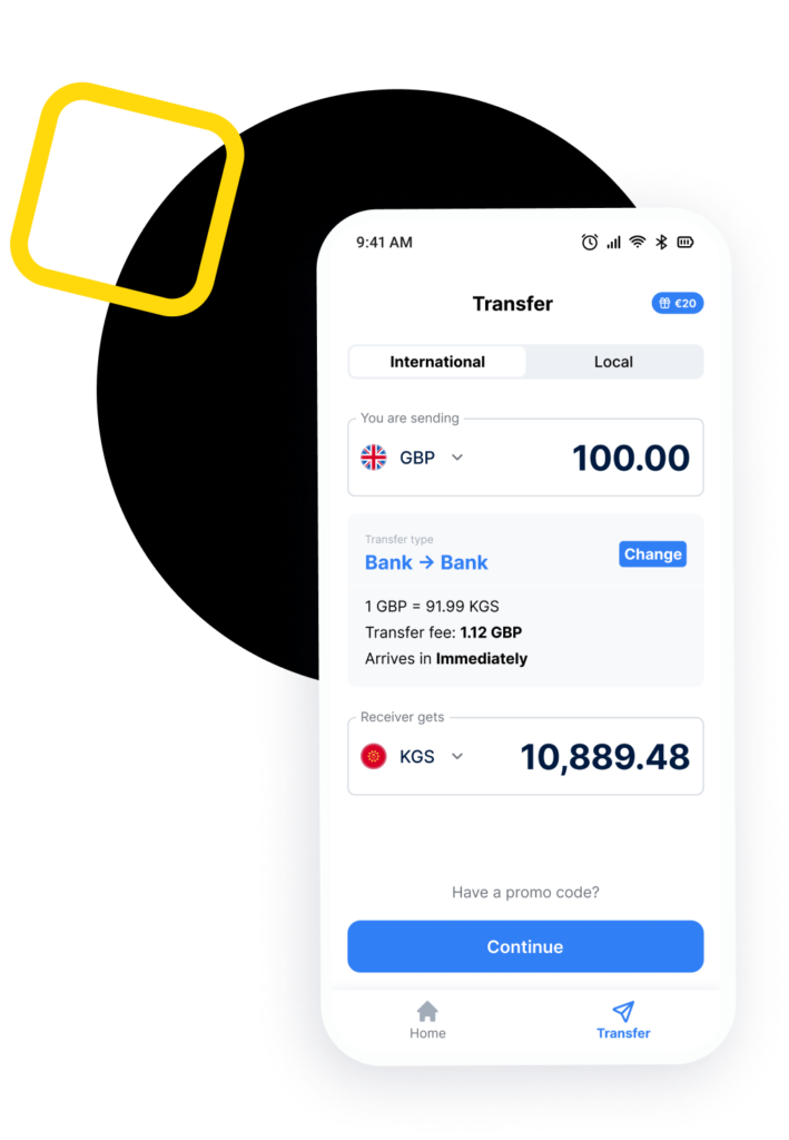 If you’re making a bank transfer, start your order in the TransferGo app, then use your own banking app to send TransferGo the money—using the bank details they send you. Once you’ve done that, let TransferGo know in the app, and they’ll send the money to your receiver in Central Asia.