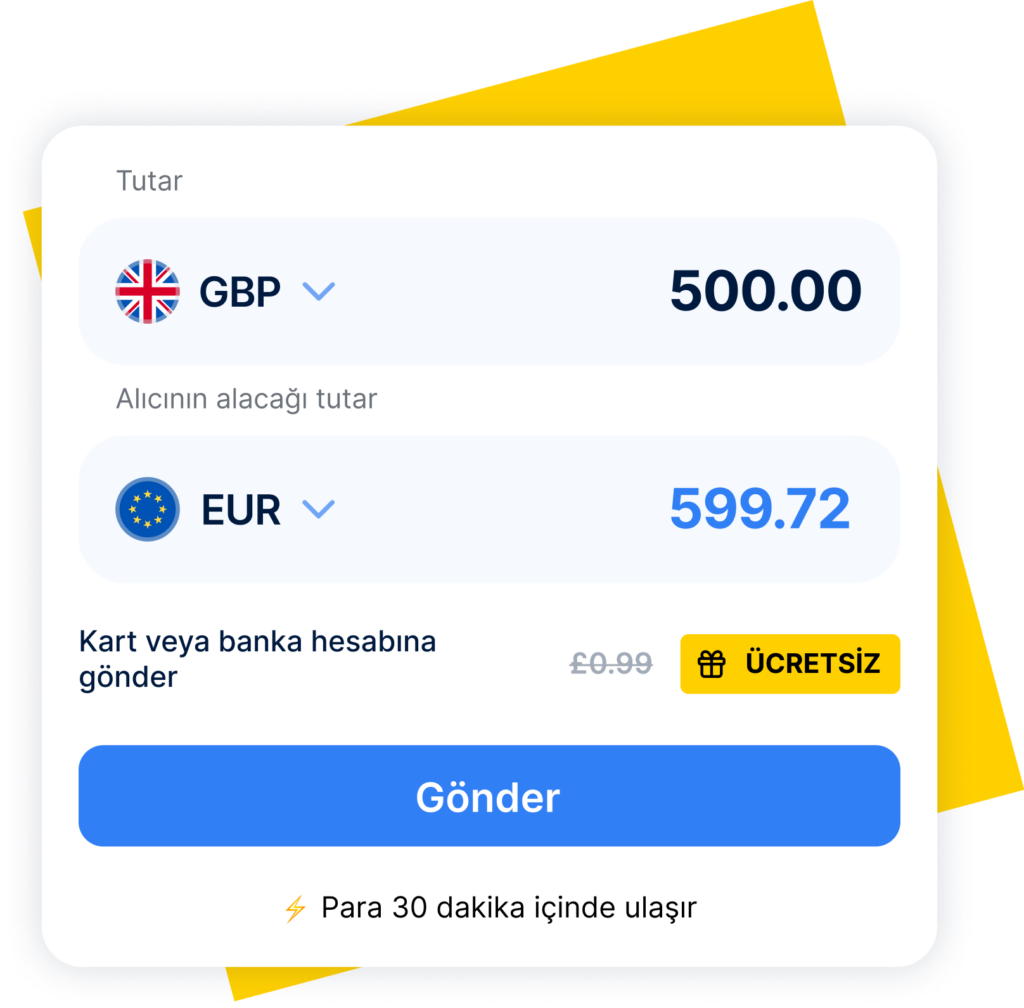 Göndermeden önce işlem detaylarını (ücret ve gerçek zamanlı döviz kuru dahil) gözden geçirin. Şeffaflığa inanıyoruz—gösterilen tutar, ödediğiniz tutar ile aynıdır. Transferiniz için ödeme yaptıktan sonra, transferiniz yola çıkacaktır.